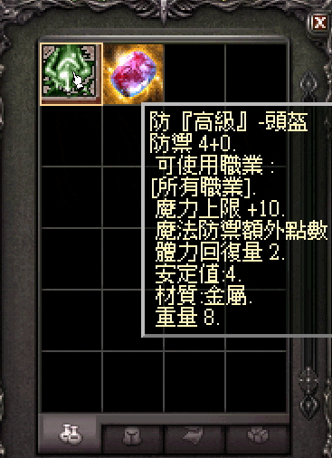 適用裝備/部位: 高級以上的 頭盔、盔甲、手套、斗篷、鞋子